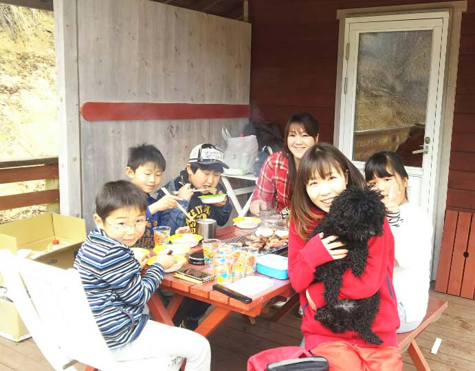 春休みのBBQ 先日訪れてくださった「ハッピーちゃん」とそのご家族方。 あいにく雨が降ったりやんだりの天気でしたが、素敵な笑顔でパチリ! 皆様も春休みで家族が揃う日にBBQはいかがですか? 貸出用具もございますので、お気軽にお問合せください。